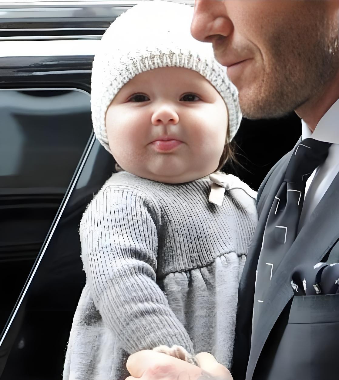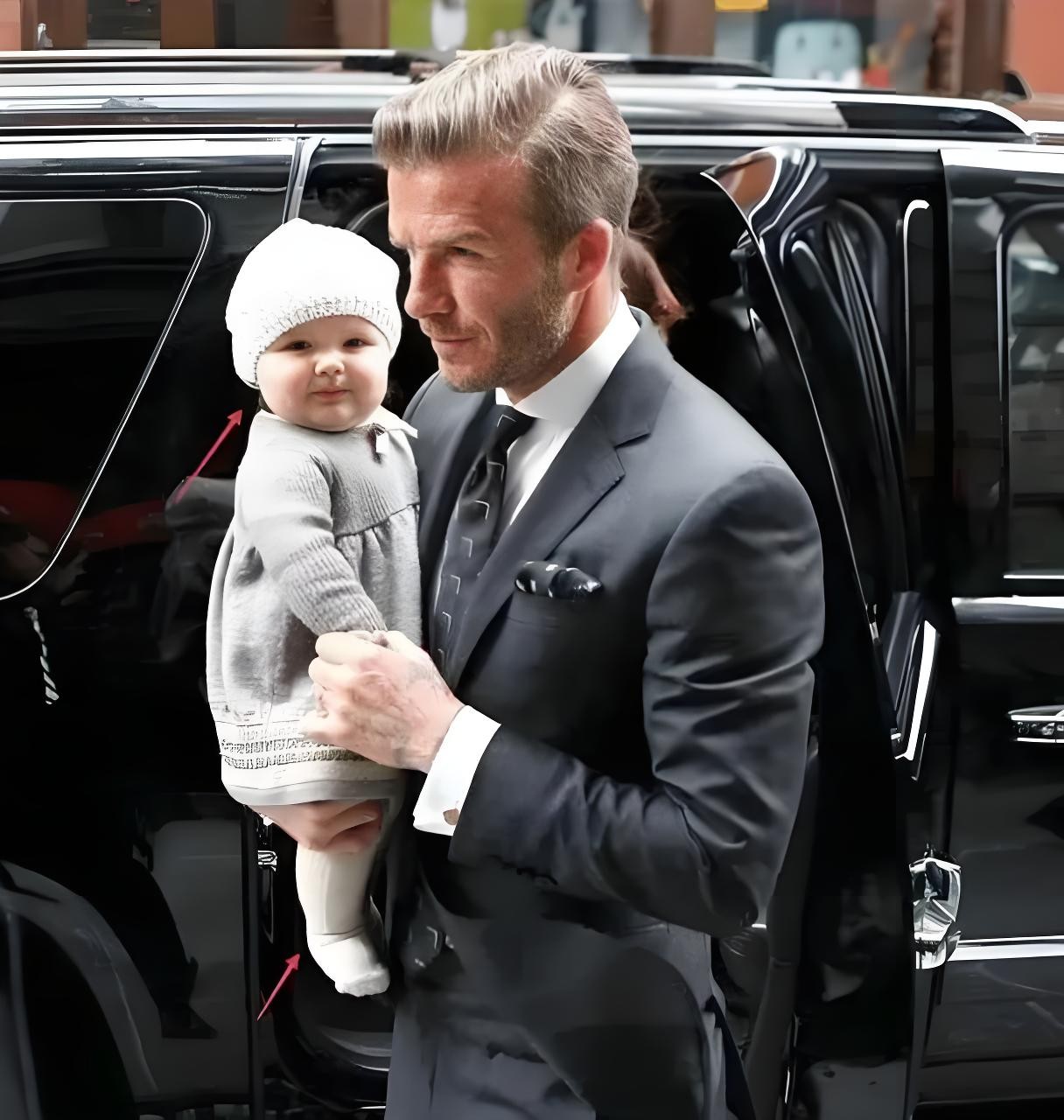 几个月的小七,被抱在贝克汉姆怀里的样子,也太萌了!