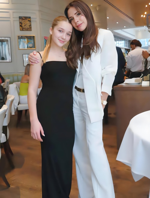 现在的小七已经出落得非常漂亮,和妈妈维多利亚站在一起也不逊色。