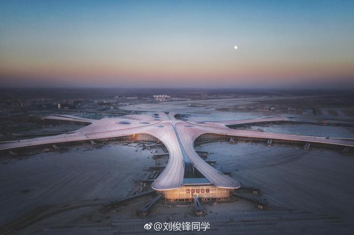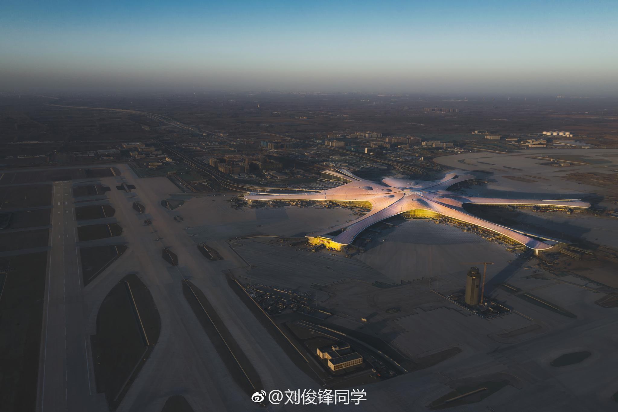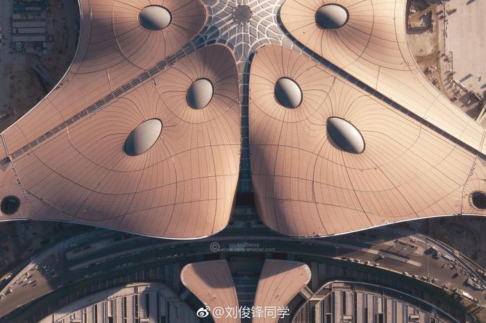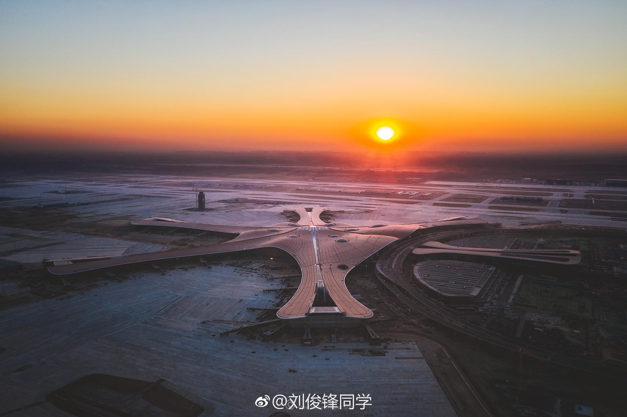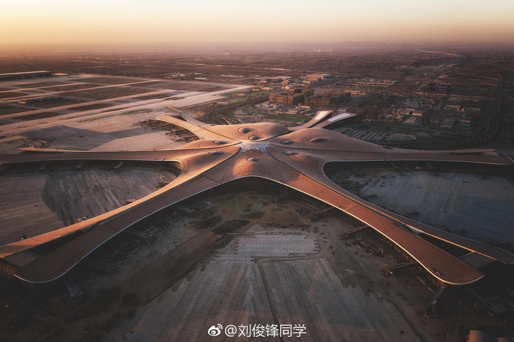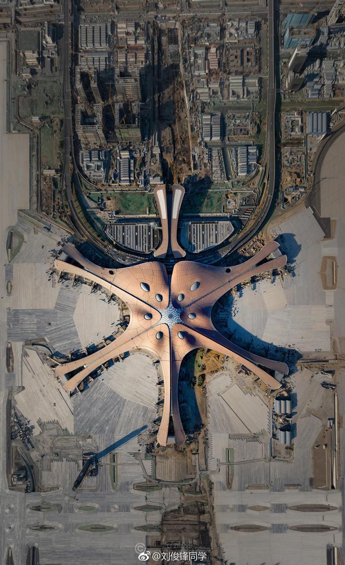 北京大兴国际机场,或许是世界上最大的单体机场,也是扎哈设计过最大的建筑,即使升高到500m,拍出来也只有图5的大小。这么大的建筑,国庆就要投入运营了,建造速度实在太快了。可惜明天就禁飞无人机了,赶在末尾的好天气拍摄一组。