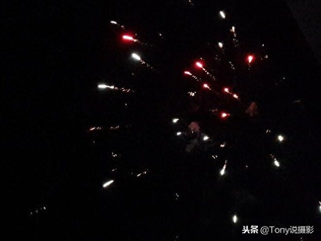 下图是以1/500秒的快门速度拍摄,把光点的运动给凝固了,不能表现烟花效果,付灿书:
