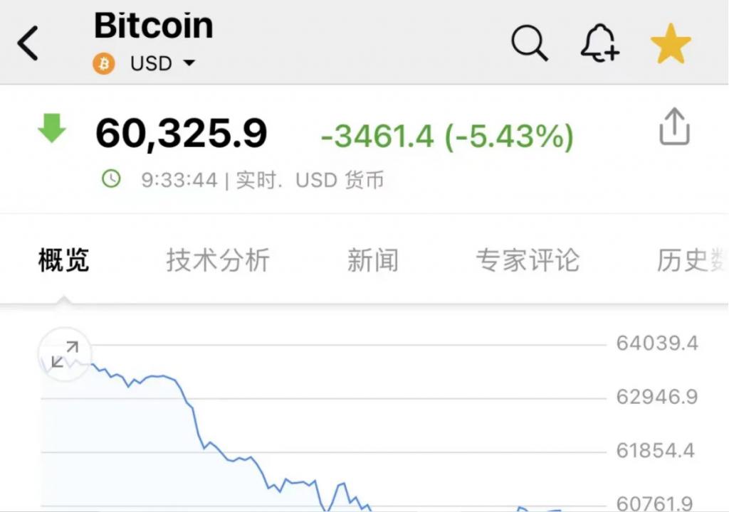 美股尾盘时,比特币盘中跌破 6 万美元,部分平台交易价跌至 5.92 万美元下方,较日高跌超 5000 美元、跌超 8%。截至发稿,比特币兑美元徘徊在 6 万美元上下,最近 24 小时跌超 5%。