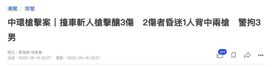 6月10日凌晨2时许发生的中环斩人枪击案更令人关注,一批男子在兰桂坊酒吧与人发生争执,散场后该批男子被8名刀手包括本地人及南亚裔人士围攻。一时之间,深夜的云咸街杀声震天,枪声、追斩声及惨叫声混杂其中。