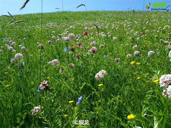 每到8月,这里山花烂漫,牛羊似锦 ,弯弯曲曲的乃林河流淌其间,牛羊星星点点散落在河边,美如画卷。