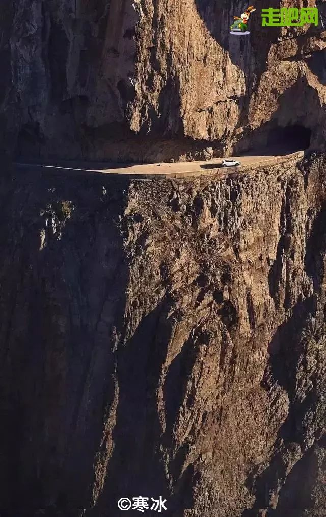 这里有条井底挂壁公路,完全悬在半山腰,距山顶和沟底都有上100米,相当于30多层楼的高度。