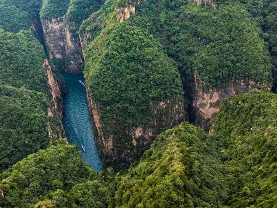 这里有太行山大峡谷,连绵的山川,丰富的地质奇观,造就了深潭瀑布、溪水潺高悬耸立、遍山葱茏的景象,所以这里被中国天气网评为“中国天气.避暑之城”。