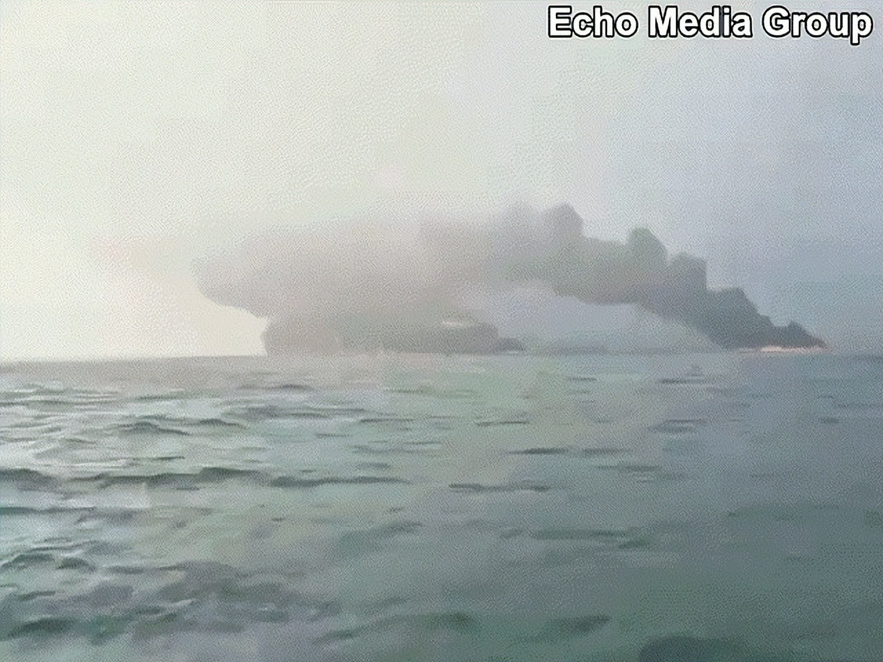 “Stena Immaculate”号船体破裂,数千吨Jet-A燃料泄漏并引发多次爆炸,最终燃起熊熊大火。