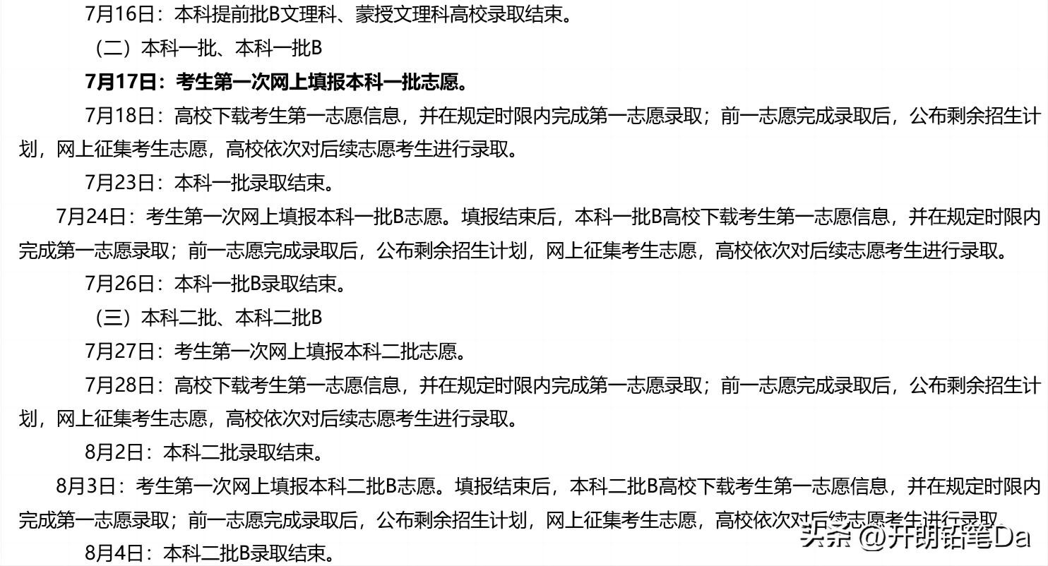 第二批本科(含地方专项计划、预科和定向):7月24日至7月31日。