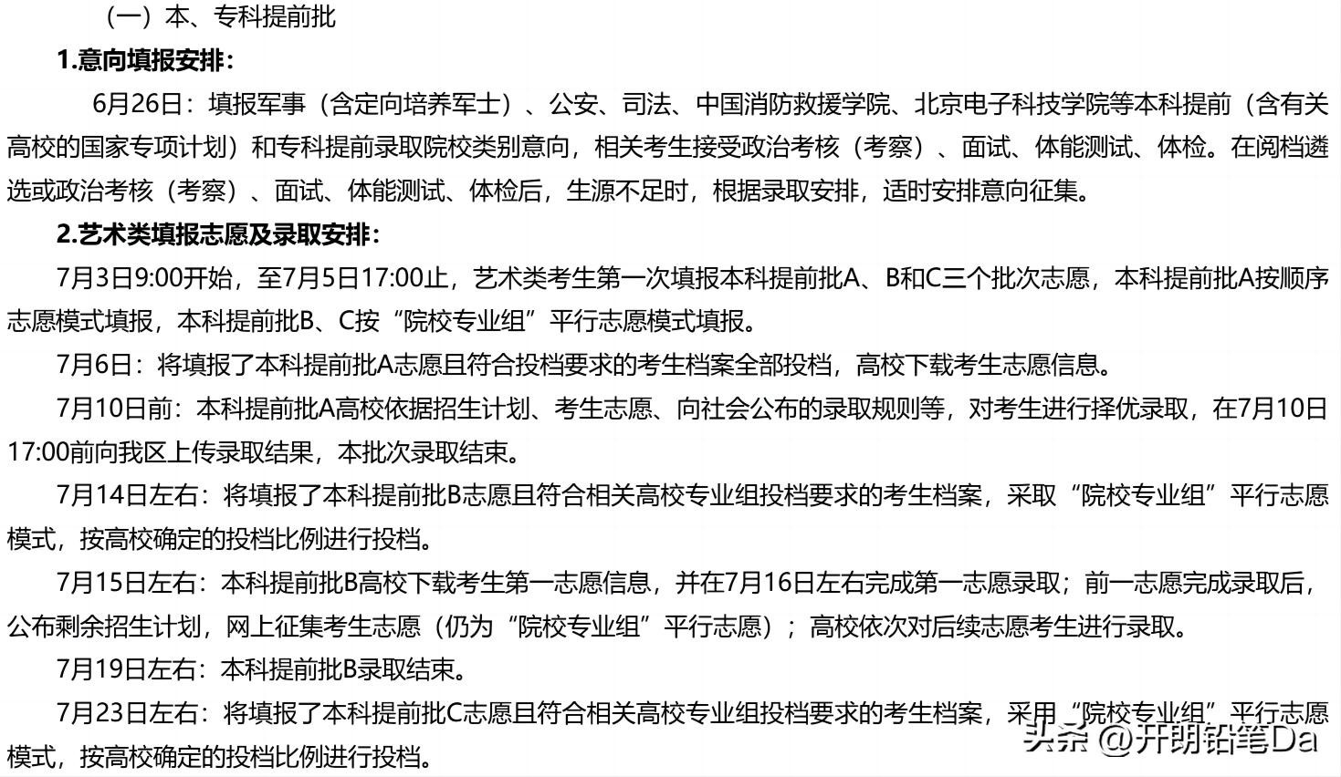 普通类本科提前批次志愿:7月12日(当日9:00-15:00)
