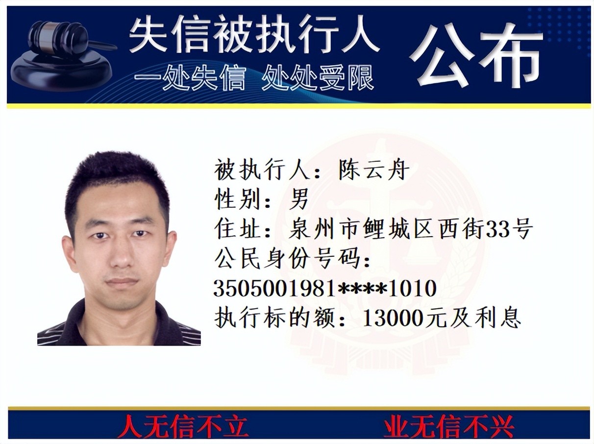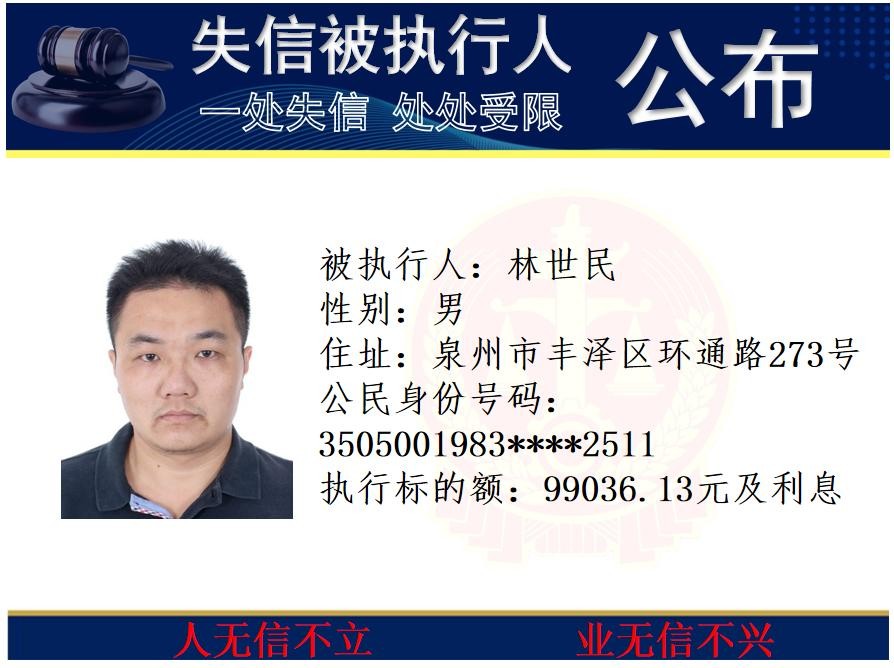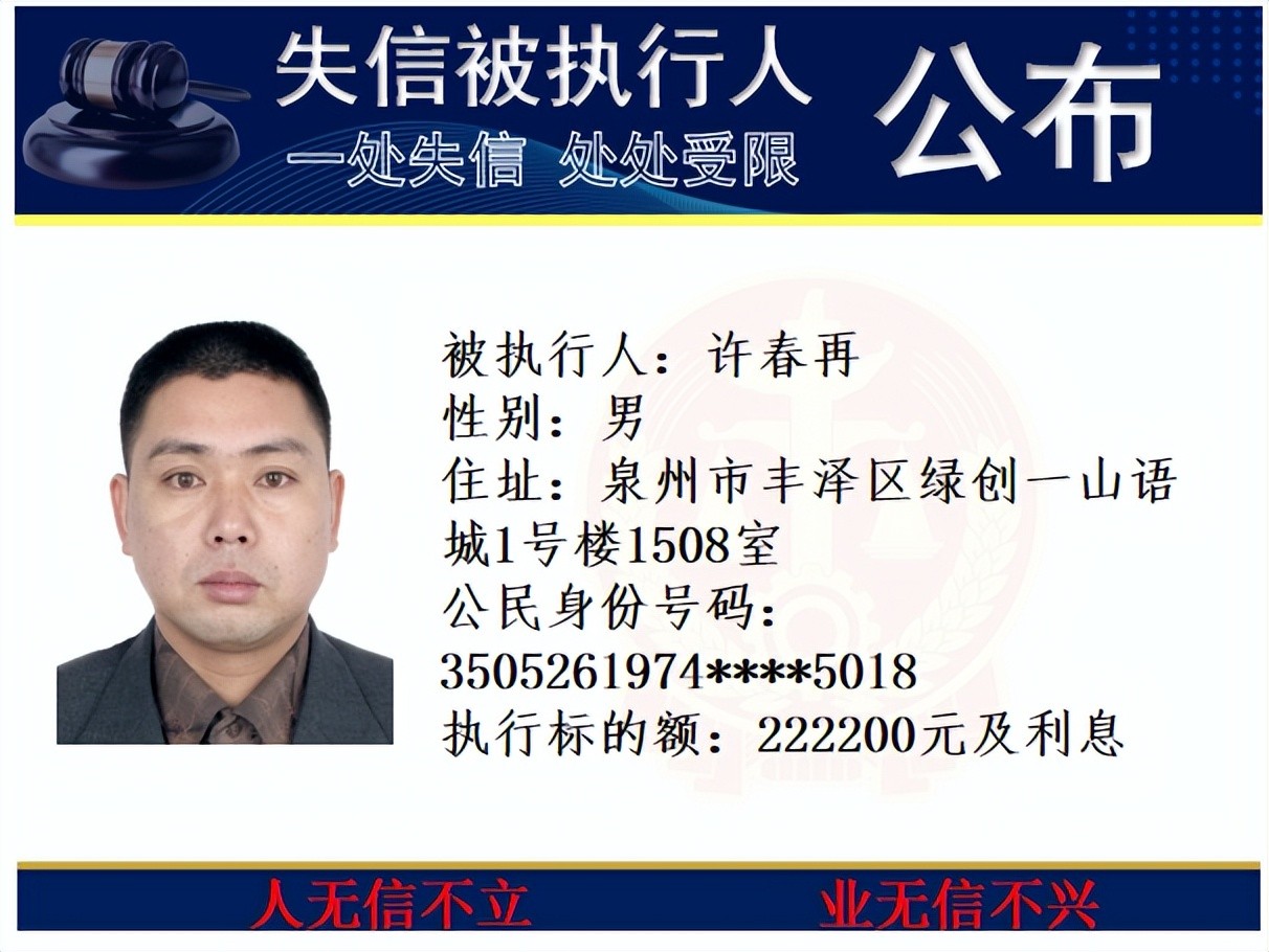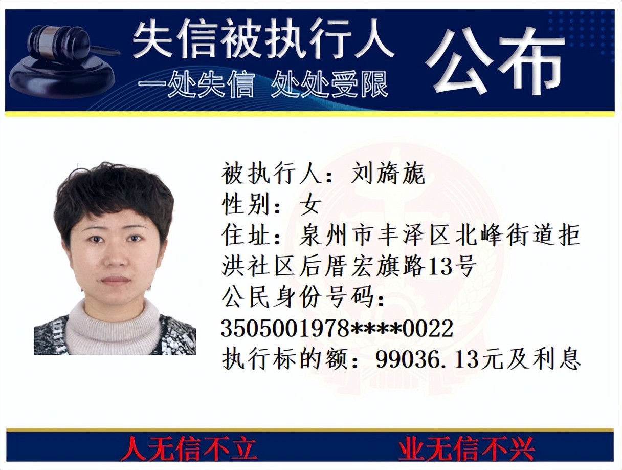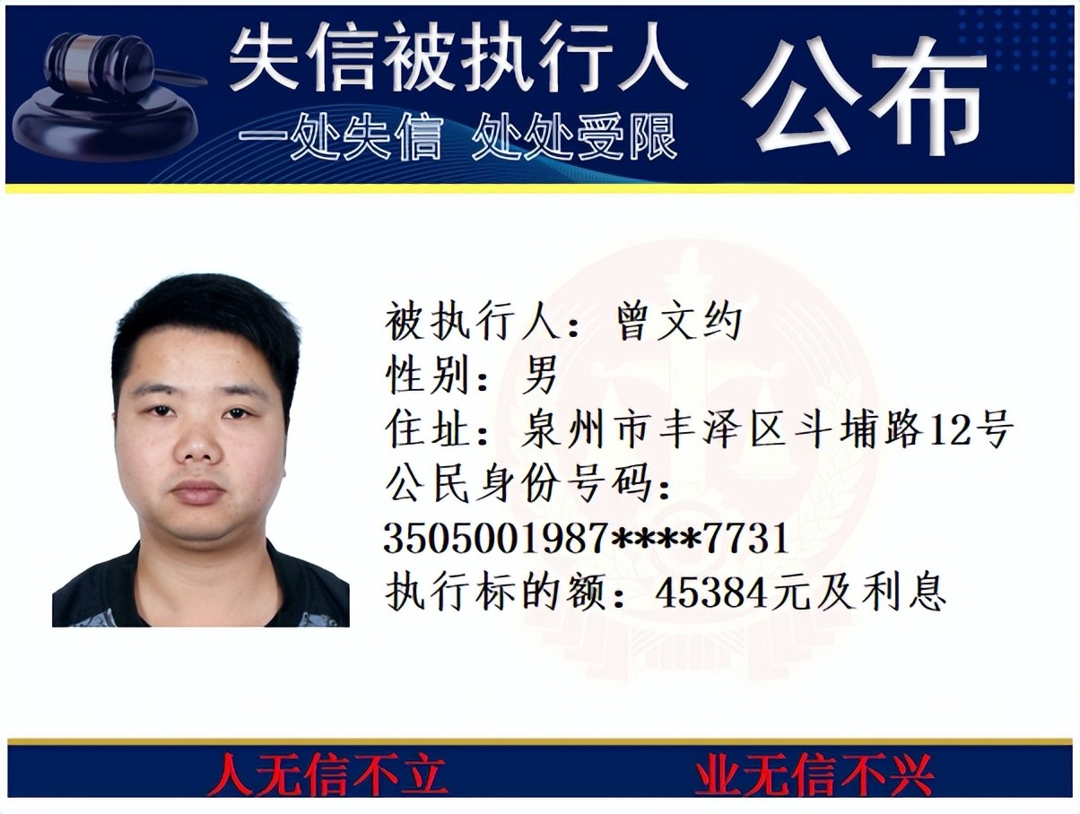 丰泽法院公开发布失信被执行人名单