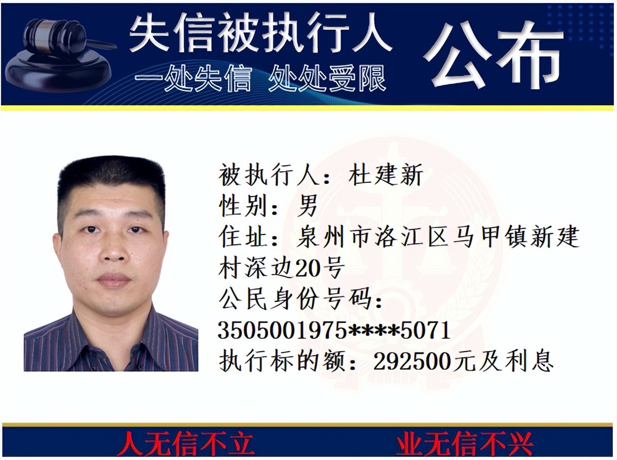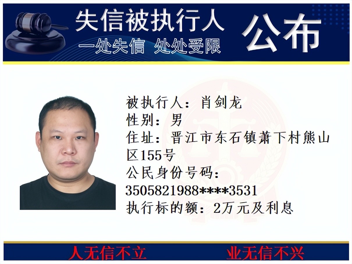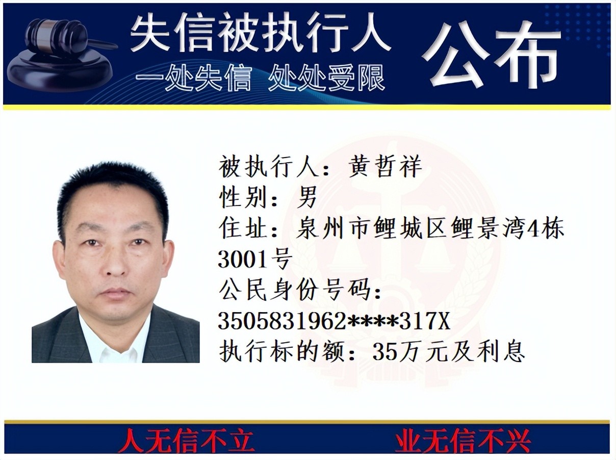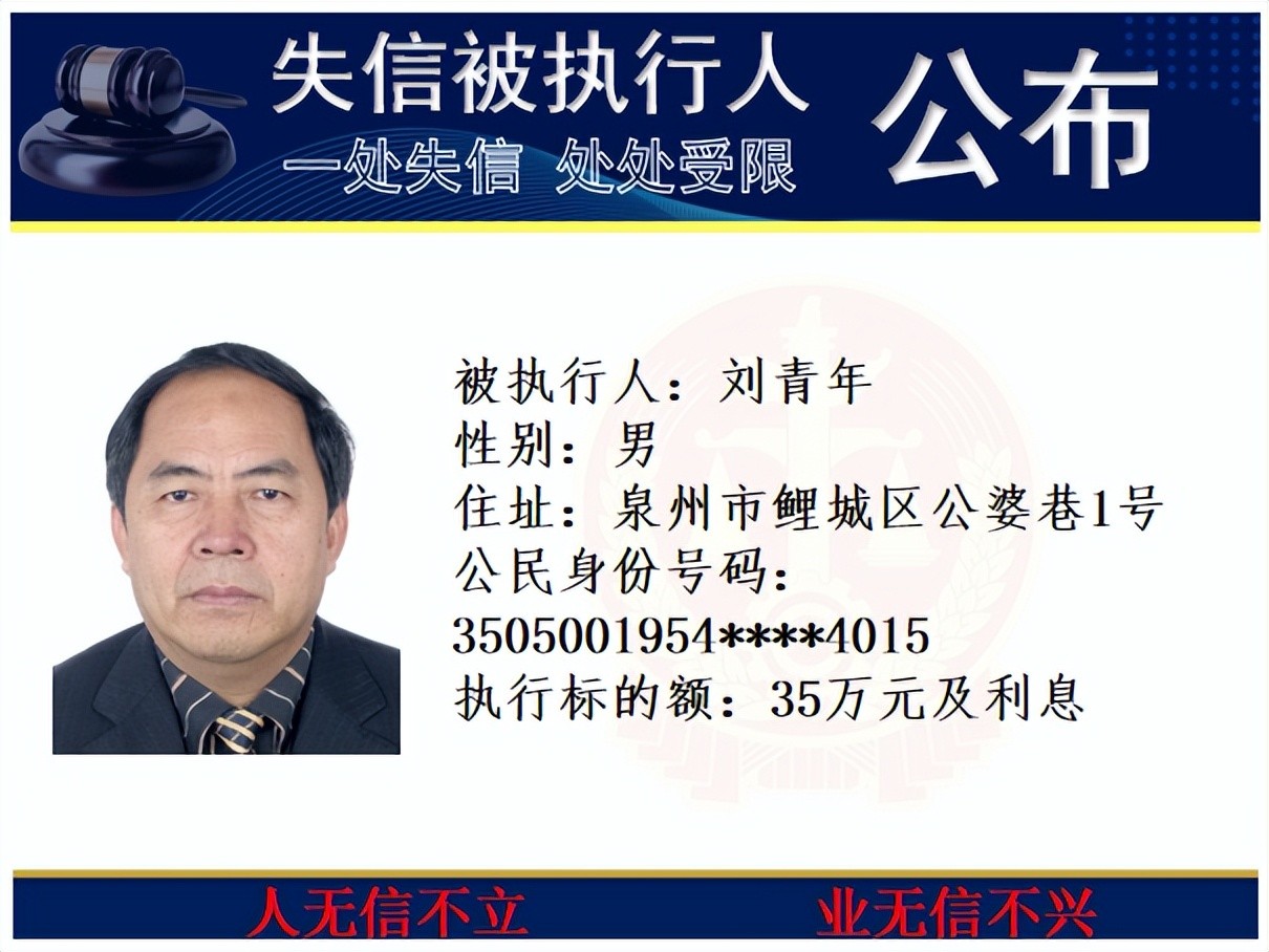 丰泽法院公开发布失信被执行人名单