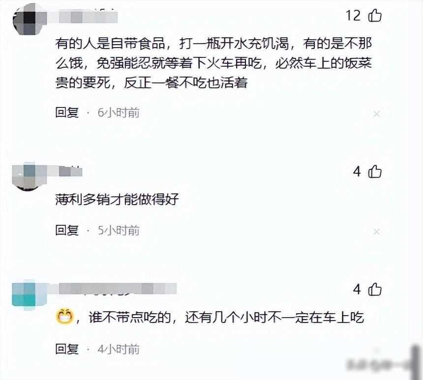与外面的价格相比,火车上的食品价格往往偏高,这让乘客们感到不值得。许多人宁愿提前准备好食物,或者带上一些零食自行解决。
