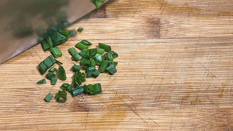 4. 小葱葱叶部分切成葱花,切好之后放入小碗中