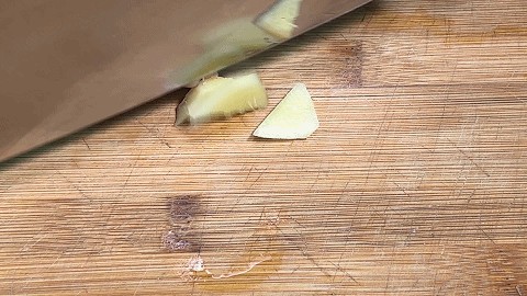 3. 生姜一块切成姜片切好放入小碗中,小葱的葱白部分切成葱段,切好一起放入小碗中