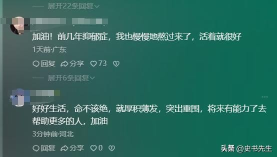 更多的网友还在评论区分享自己的“糟心事”,试图通过这样的方式让他能够好受一些。