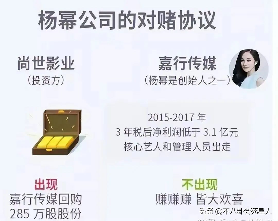 在这期间杨幂签下了对赌协议,必须在三年内完成3亿的税后净利润,于是杨幂不但自己出演爆款电视剧,还带着旗下热巴、张云龙等艺人一同捞金,以4亿多的净利润超额完成了对赌协议。