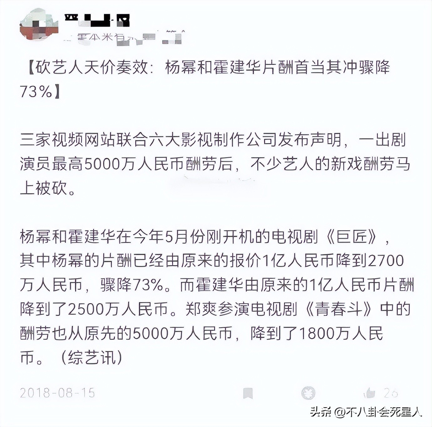 由于2018年左右,广电总局明确出台了限薪令,杨幂的片酬从1亿锐减到了2700万,但这对普通人来说,仍然是遥不可及的数字。
