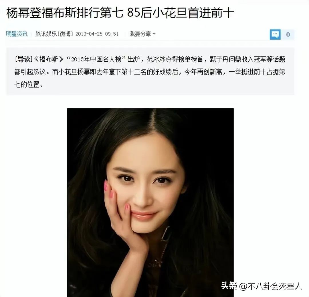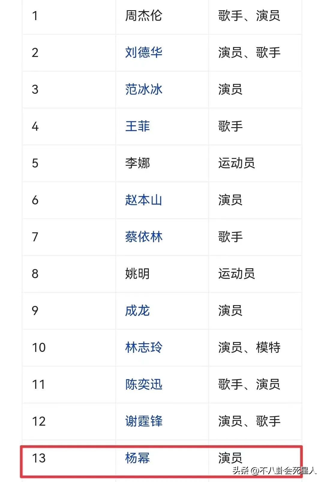 在2012年杨幂就成立了个人工作室,发专辑、担任影视制作人、拍戏,忙得不亦乐乎,于是杨幂在福布斯中国名人榜上迅速飙升到第13名,年收入高达3380万。