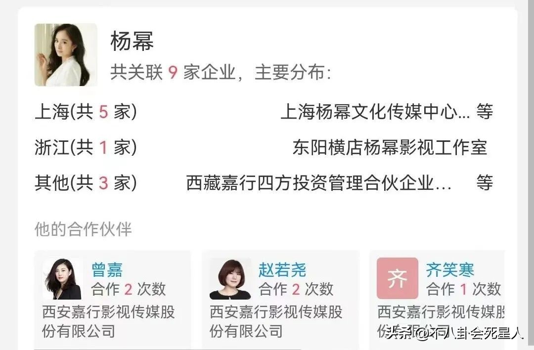 自身具有超高商业价值的杨幂,也很有商业头脑,她在2014年时,就和两位经纪人一起出资300万,成立了海宁嘉行天下,又在2015年和他们成立了西藏嘉行,后来在西安上市后就改名为众所周知的嘉行传媒。
