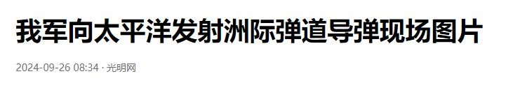 2024-09-26 08:34·光明网——我军向太平洋发射洲际弹道导弹现场图片