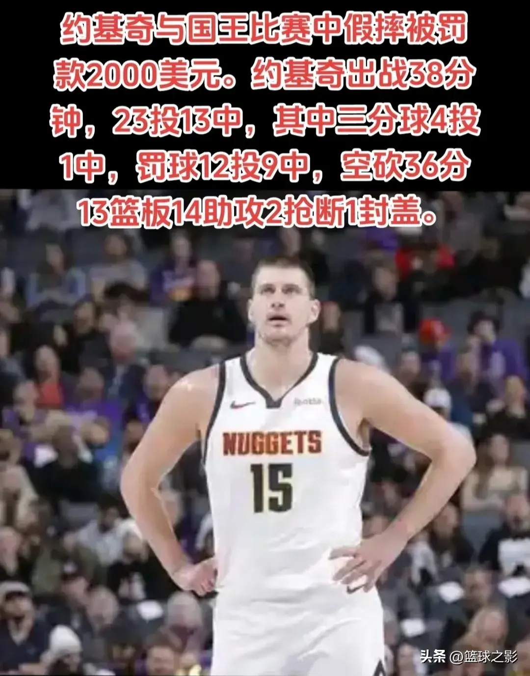 NBA官方公布:约基奇因假摔被罚2000美元