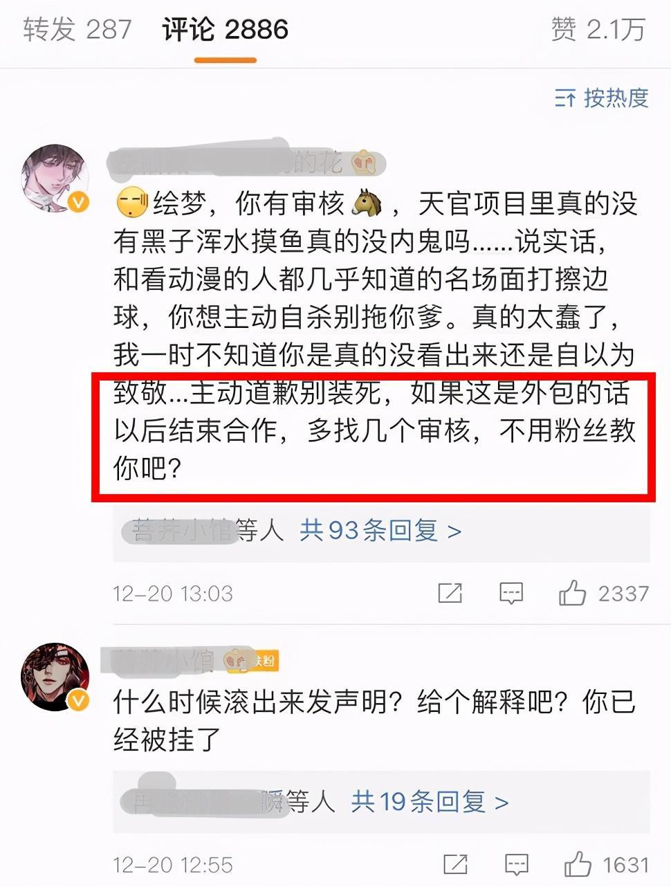 粉丝给出的意见很诚恳,诚恳道歉,如果是外包公司的话停止合作,至少要给这么多支持作品的漫迷一个交代,《天官赐福》能有今天的荣誉,离不开背后支持的粉丝,粉丝是作品背后有力的支持,但同时也起着一定的监督作用。我们的目的无非是让这个作品以一种健康平稳的方式成为国漫中值得炫耀的作品。