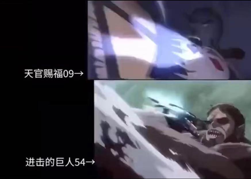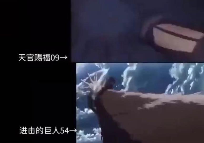 没想到才刚传出播放量破2亿的消息,《天官赐福》动画就遭遇了致命性的打击,动画最新一集里面的名场面因为镜头与另一部日本经典动画《进击的巨人》高度重合,被网友质疑抄袭。