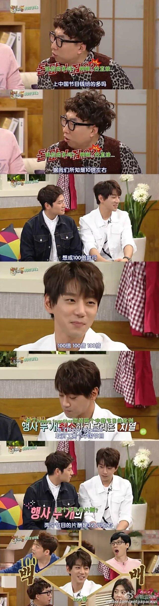 呵呵,真是好厉害好怕怕啊!最后,我们来看看韩国歌手黄致列几个月前在某综艺节目,被问及在中国的出场费时,他表示:“看作是韩国的100倍就行了”。