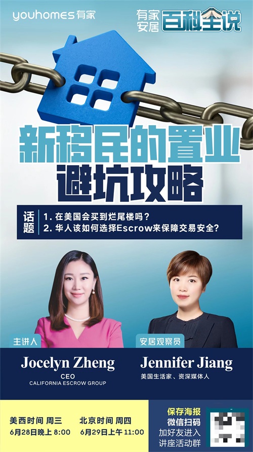 新移民由于对美国房地产市场不够了解,在每个购房细节中都很可能被卡脖子。不过,别担心,有家特别邀请到加州房地产公司的大佬,特别为各位朋友讲解【新移民的避坑指南】。