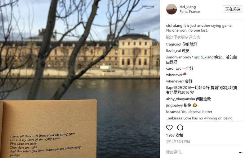 上面这段话不是诗人说的,也不是作家写的,而是超模Cici发的微博。她叫项偞婧。