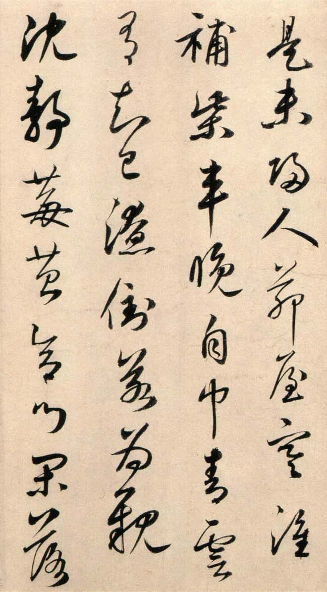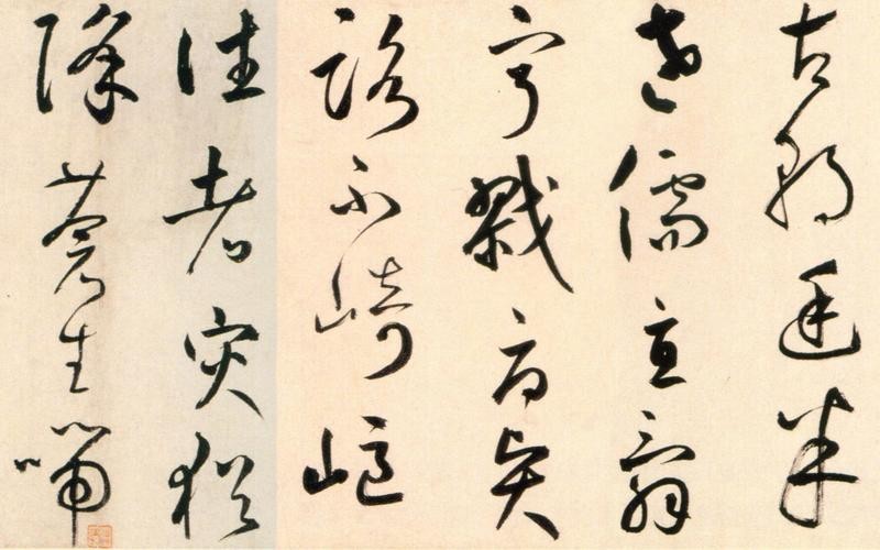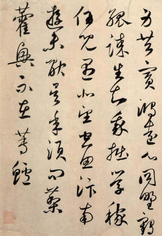 而鲜于枢则不同,他曾在野外游历时偶然见到两人推拉陷入泥泞的车辆,从中领悟到笔法。因此,他的笔法中更加放纵,却又带有一种坚韧的力量。酒醉之后,他的笔墨变得奇特而放肆。元代的书法评论家陈绎曾对他的悬腕作书非常佩服,曾向他请教。鲜于枢当时嗔目伸臂,大呼:“胆!胆!胆!”可见他在酒醉或书写时的狂放和自信。他情感奔放,毫不拘束,具有非凡的胆略。因此,可以想象他挥洒时的激烈气息和他笔端飞出的奇特、雄浑的点线。
