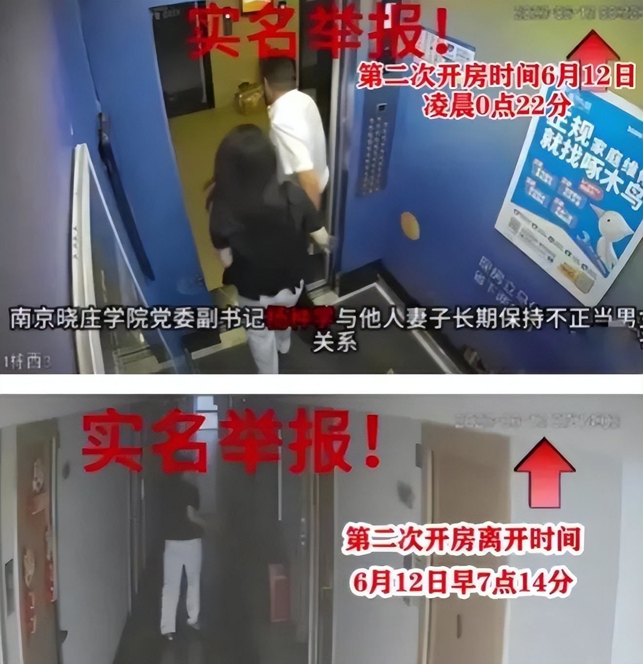 近日,一段南京某高校副院长杨书记与已婚女子张女士在宾馆电梯里激吻的视频在网上引起轩然大波。视频中,两人进入电梯后就紧紧拥抱在一起,亲吻抚摸,毫不顾忌监控摄像头的存在。电梯门打开后,两人快速进入房间,5个小时后才出来。据悉,这是两人在5天内第三次幽会。