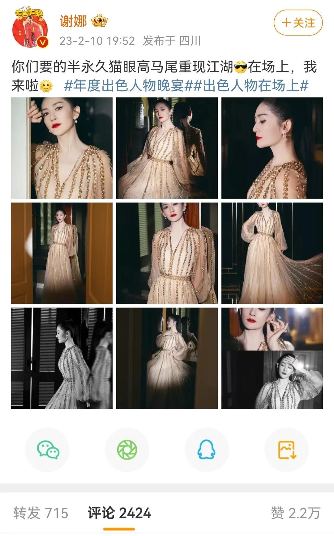 工作室第一时间也发了精修图,容颜精致,炫彩华丽,美到发光,让人眼前一亮,跟生图完全判若两人。谢娜营业也特别积极,还立刻发了词条,想让热度起来。
