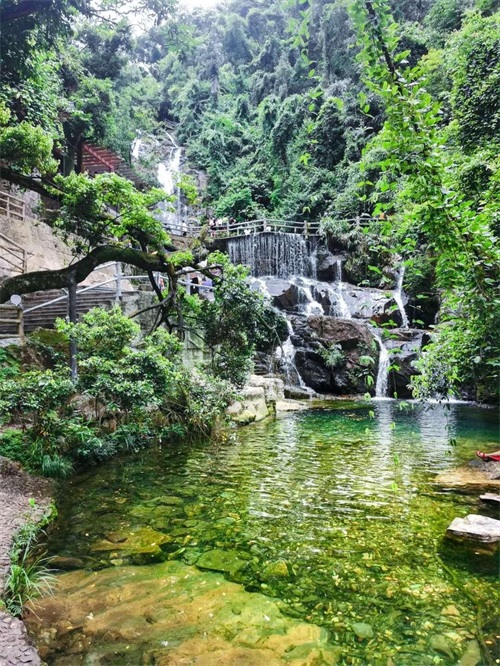 肇庆鼎湖山是岭南四大名山之首,夏日炎炎,来鼎湖山是必须选择好去处,走进飞水潭,溪水非常清澈,可以全身消暑感觉,看着冰凉溪水让身心舒适,水清如镜,又绿又蓝,秀丽江山之美。
