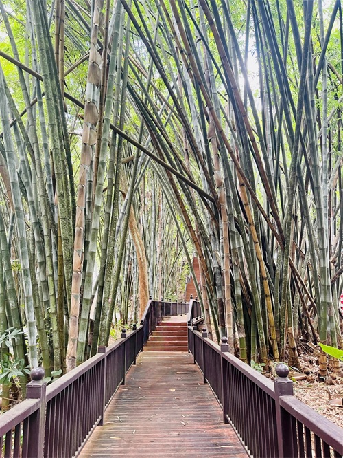 栈道两边是巨型竹林,非常出片。