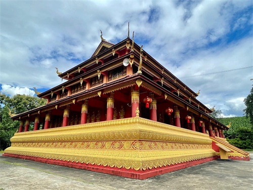 佛寺大殿吸收了中原建筑文化的内容,又受东南亚国家建筑风格的影响,具有浓郁的南传上座部佛教寺院的建筑文化气息,同时也保留了傣族传统建筑文化的特点。