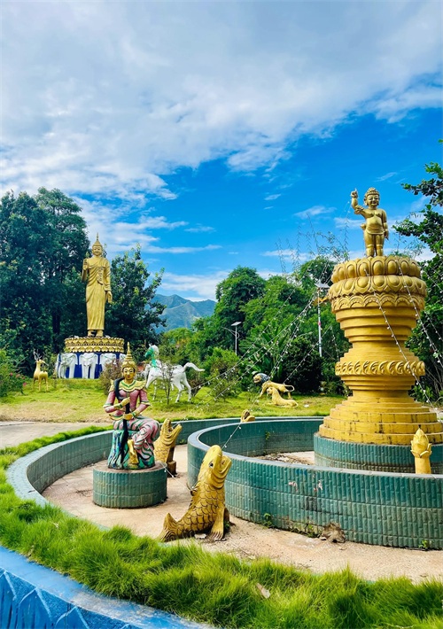 洞景佛寺内含一寺一塔,“洞景”在傣语中为锁骨之意,相传佛寺内埋藏着佛祖舍利锁骨而得名。