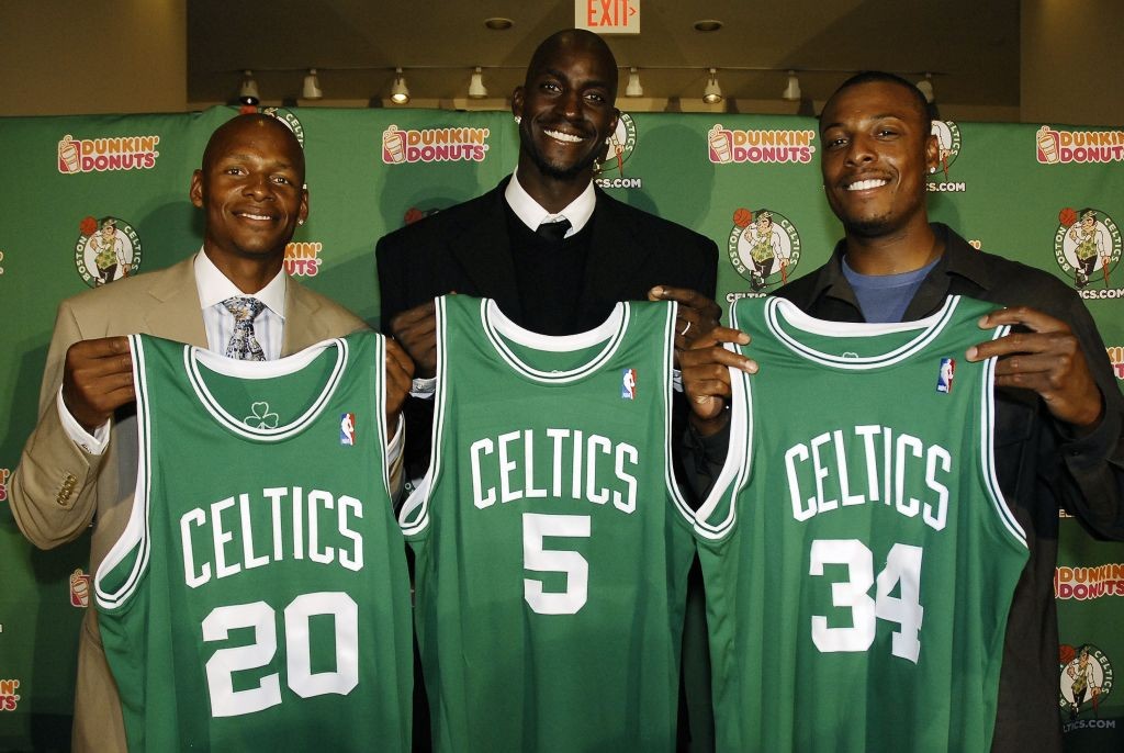 还有就是2008赛季的凯尔特人三巨头——真理保罗·皮尔斯、狼王凯文·加内特和君子剑雷阿伦。