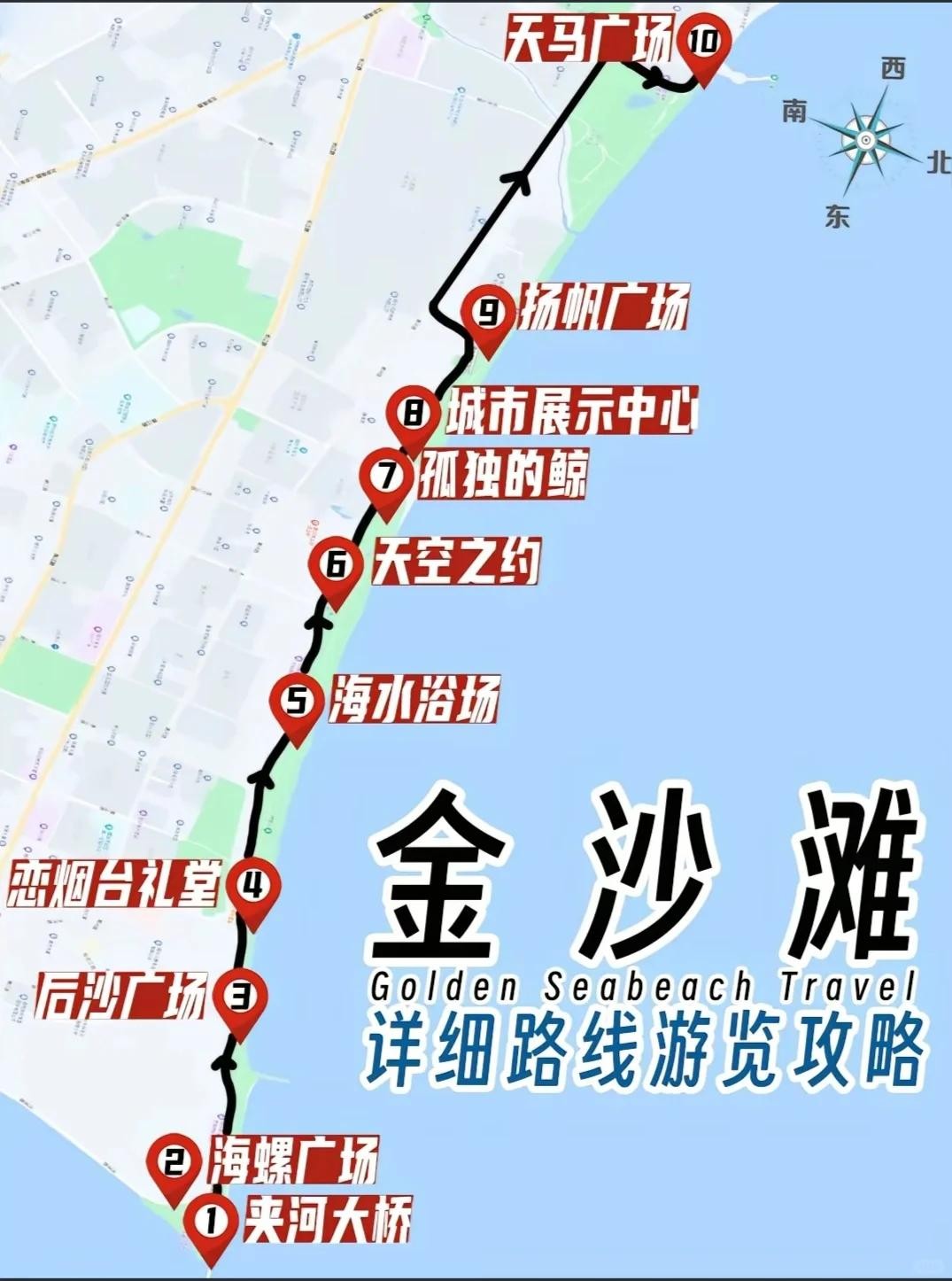 金沙滩不是某一个景点,一般提到金沙滩就是指烟台开发区沿海沙滩,东西有长万米长,又称万米金沙滩,号称北方第一海滩。