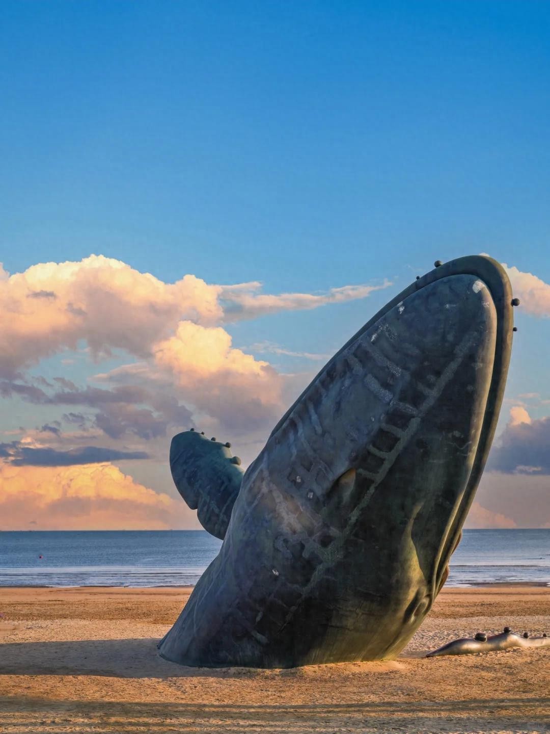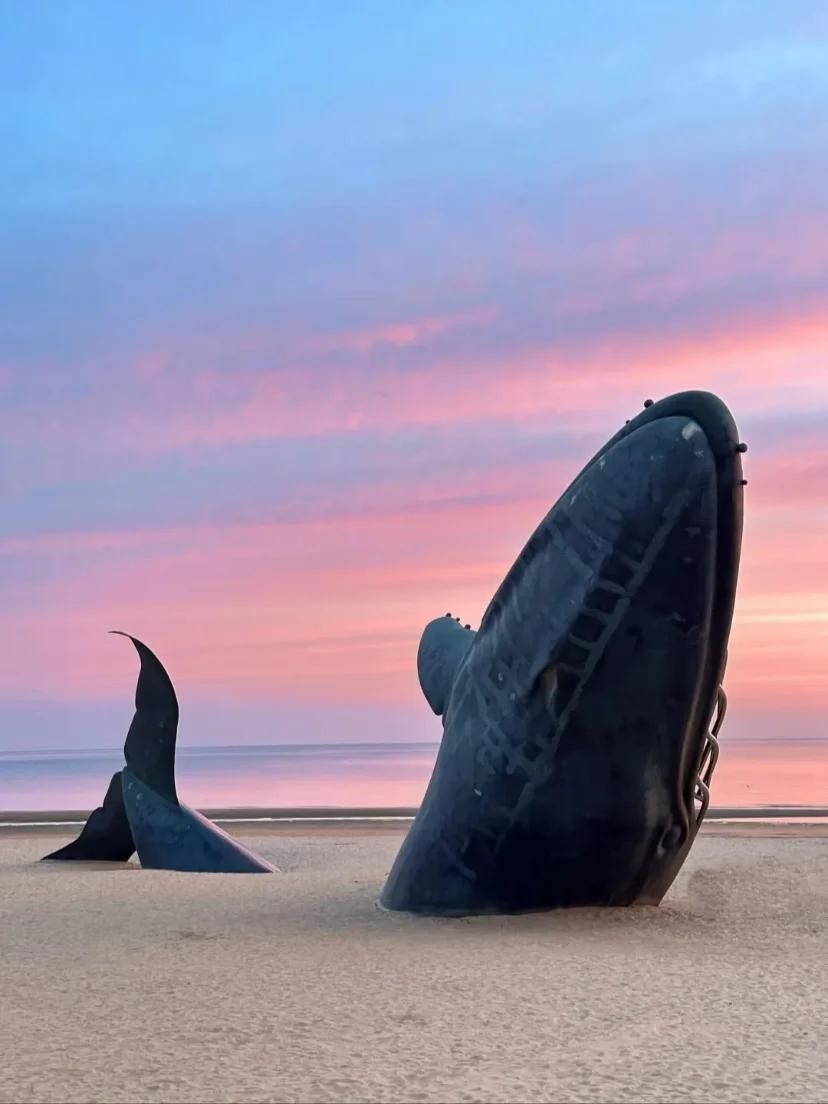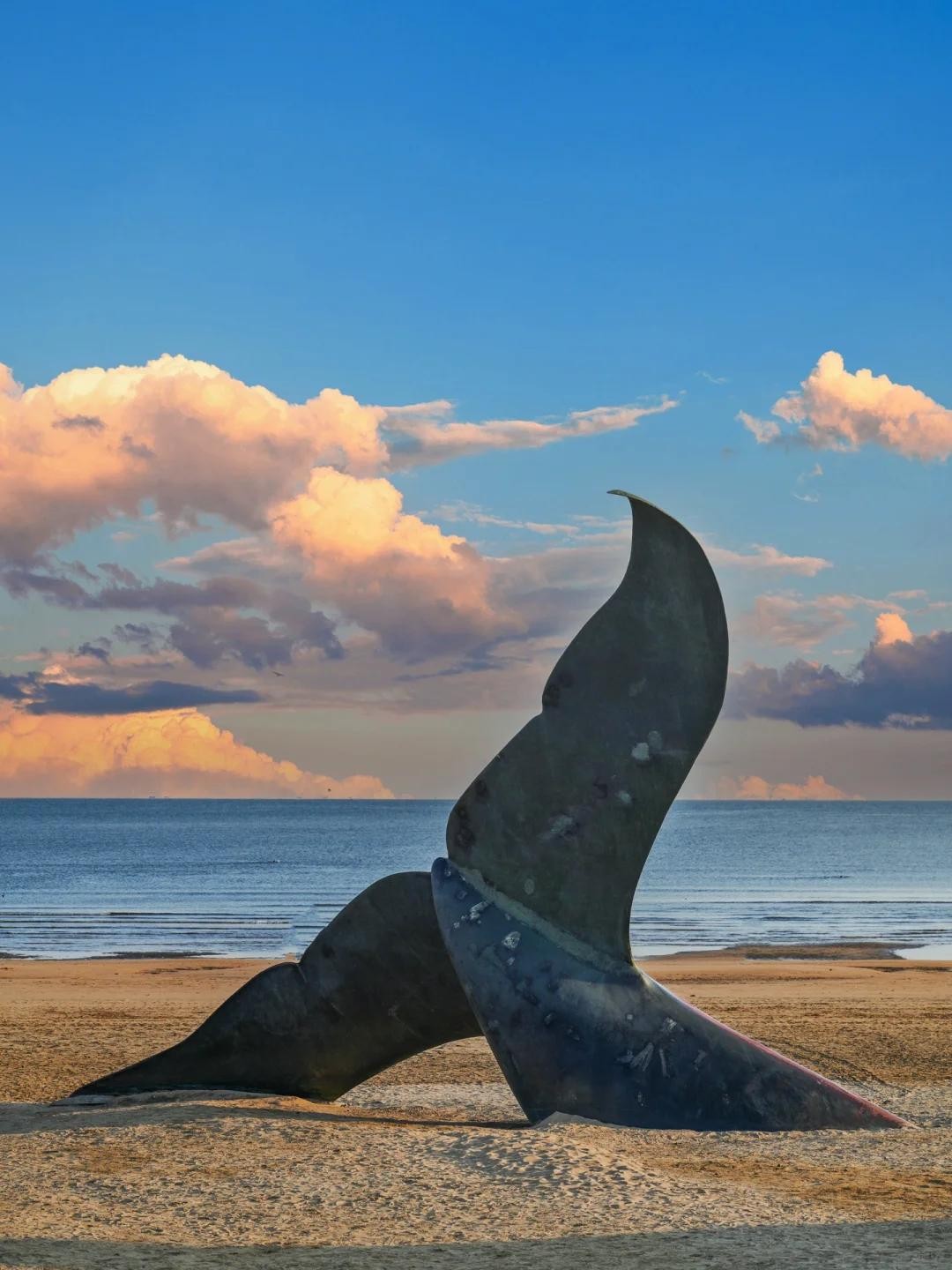 “孤独的鲸”该作品由中央美术学院设计实施,并于2016年5月全面建成对外开放。天蓝海阔,一头巨大的鲸“跃出”金色沙滩,给人巨大的心理震撼。