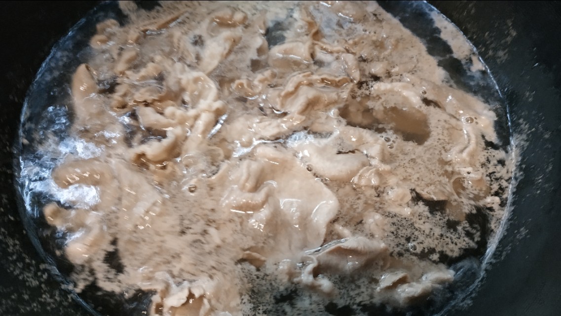 起锅烧水,水开加一点油,放入金针菇焯水捞出备用,然后水开再下入肥牛,加适量料酒焯水过凉备用(冲掉浮沫)。