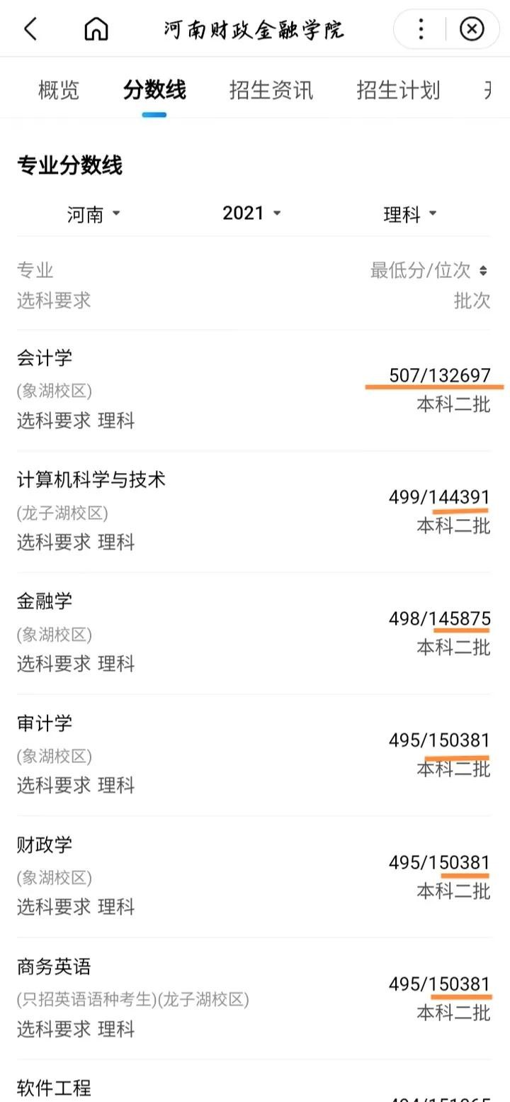 看起来学校刚刚升本科只有六年,学校实力可能不太好,但河南财政金融学院自一六年起录取最低位次一直在十四万——十六万之间