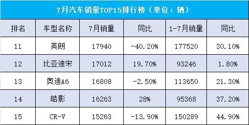 15、CR-V:7月销量15263辆;