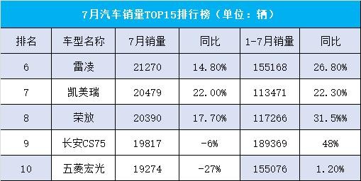 7、凯美瑞:7月销量20479辆;