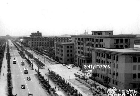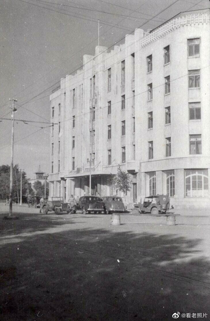 (31)1945年,哈尔滨大直街。背景大楼是哈尔滨国际饭店。