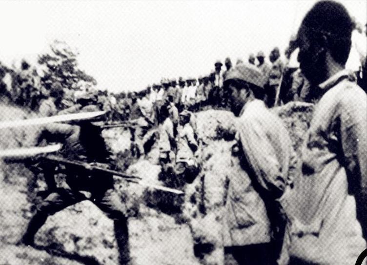 (03)大批无辜百姓被日军集中起来用机枪扫射屠杀
