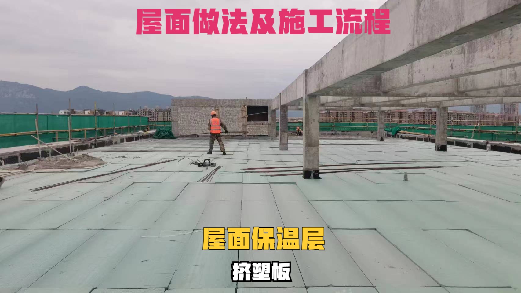1、施工准备:施工前准备屋面相关材料,如混凝土、防水卷材、保温层挤塑板、嵌缝油膏等材料,应完成防水基层清理、防水R角施工及屋面砌体及抹灰施工屋面。