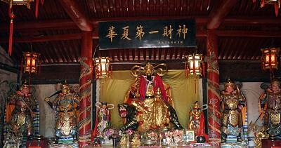 比干被认为是财富与智慧的象征,人们相信祭拜比干可以带来文才、智慧和财运。再来,范蠡是五路财神中的武财神。他与赵公明一样,形象威武,头戴铁冠,手持钢鞭,身穿红袍。范蠡被视为带来武功、财运和健康的神祇,人们相信祭拜范蠡可以得到这些祝福。最后,我们认识一下关羽,他被视为五路财神中的统财神。关羽的形象同样威武,头戴铁冠,手持钢鞭,身穿红袍。人们相信祭拜关羽可以获得财运、事业和家庭的和谐。