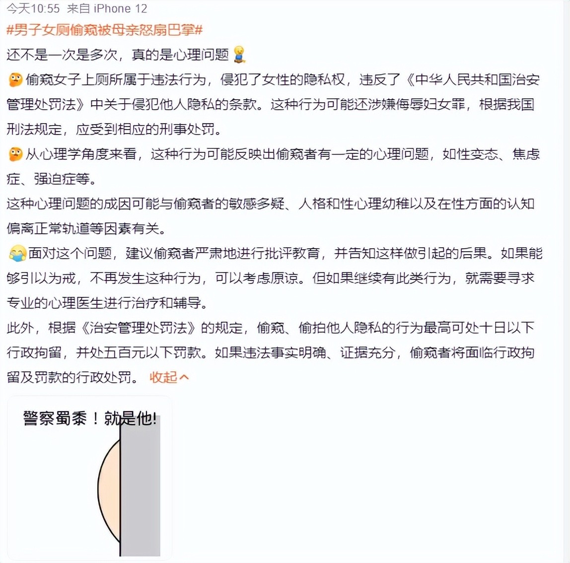 在这个信息爆炸的时代,我们的隐私似乎越来越难以藏身。最近,湖北襄阳的一位“偷窥狂”,就因为潜入女厕所偷窥而上了热搜,成为了公众讨论的焦点。这位先生的行为,不仅触犯了法律,更是引发了一场关于隐私保护和心理健康的讨论。