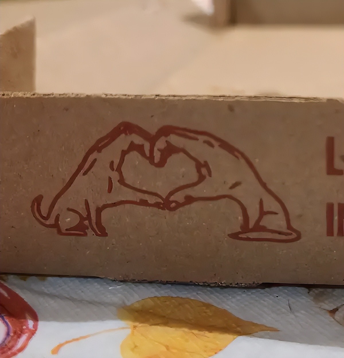 19.乍一看,这个披萨盒标志看起来像一个普通的手心,但实际上它是由两只形状奇怪、颜色怪异的狗组成的。