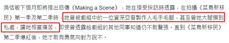 女星吴恬敏遭性骚扰!被制片人摸隐私部位,为工作默默承受太痛苦